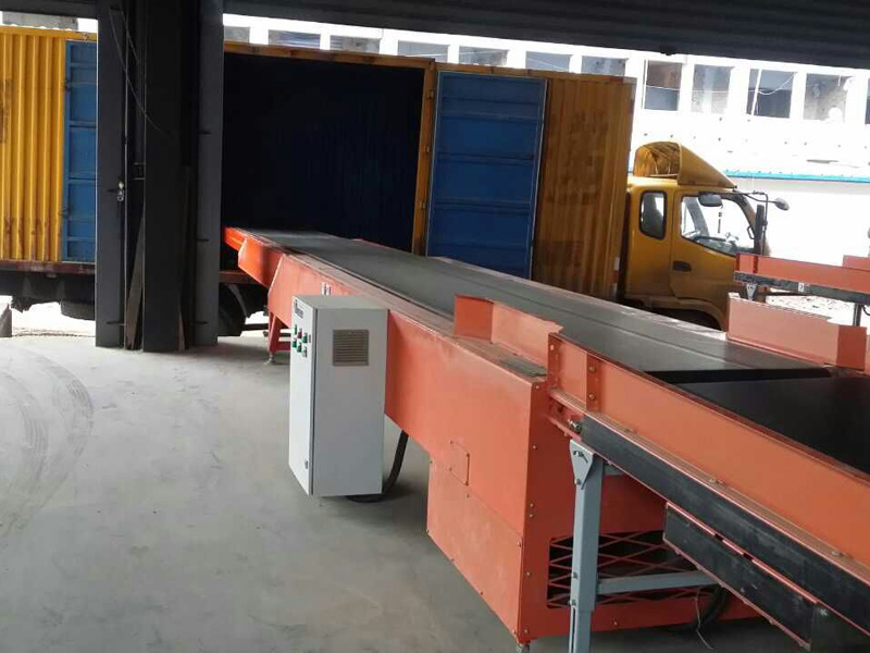 在普通的带式输送机上增加了伸缩机构,使得皮带机可以在长度方向上自由伸缩。使用者可以按照自己的要求调节按钮,随时控制输送机的长度。它大大的缩短了人工往返搬运物料的距离,缩短装卸货时间,降低劳动强度,减少货品损伤,降低装卸成本,提高工作效率。