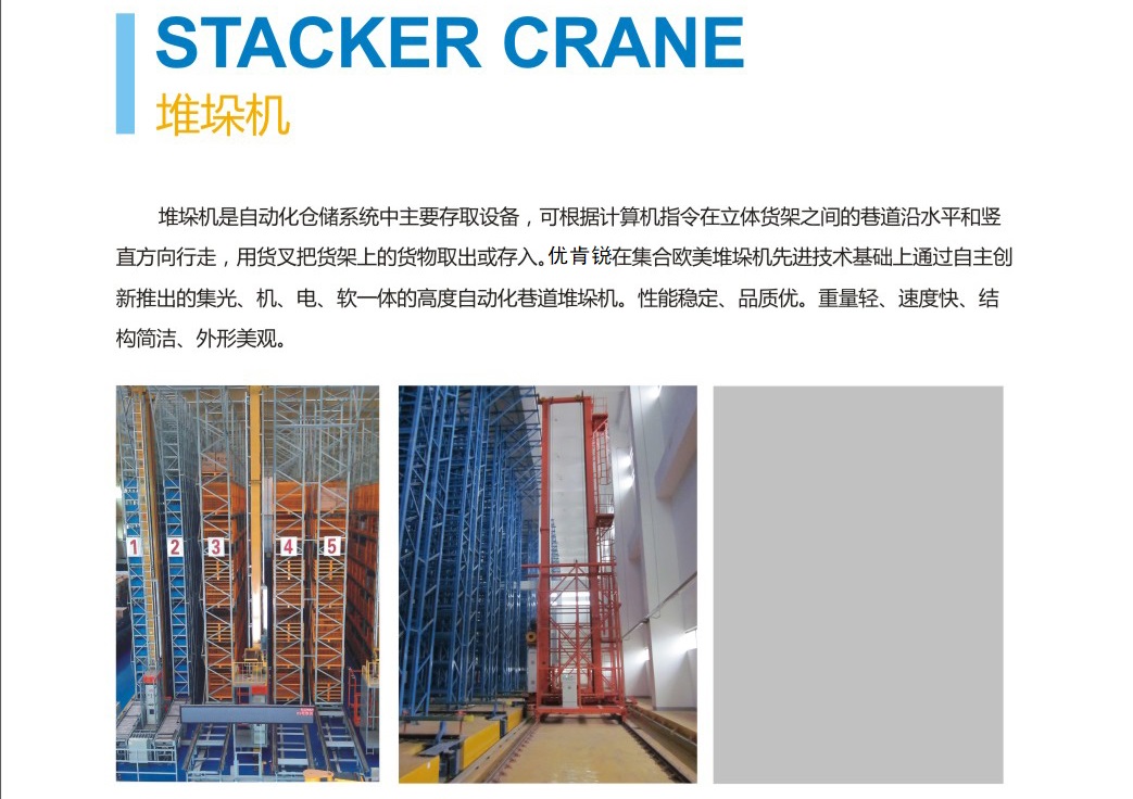 堆垛机是自动化仓储系统中主要的存取设备,可根据计算机指令在立体货架之间的道沿水平和竖直方向行走,用货叉把货架上的货物取出或存入